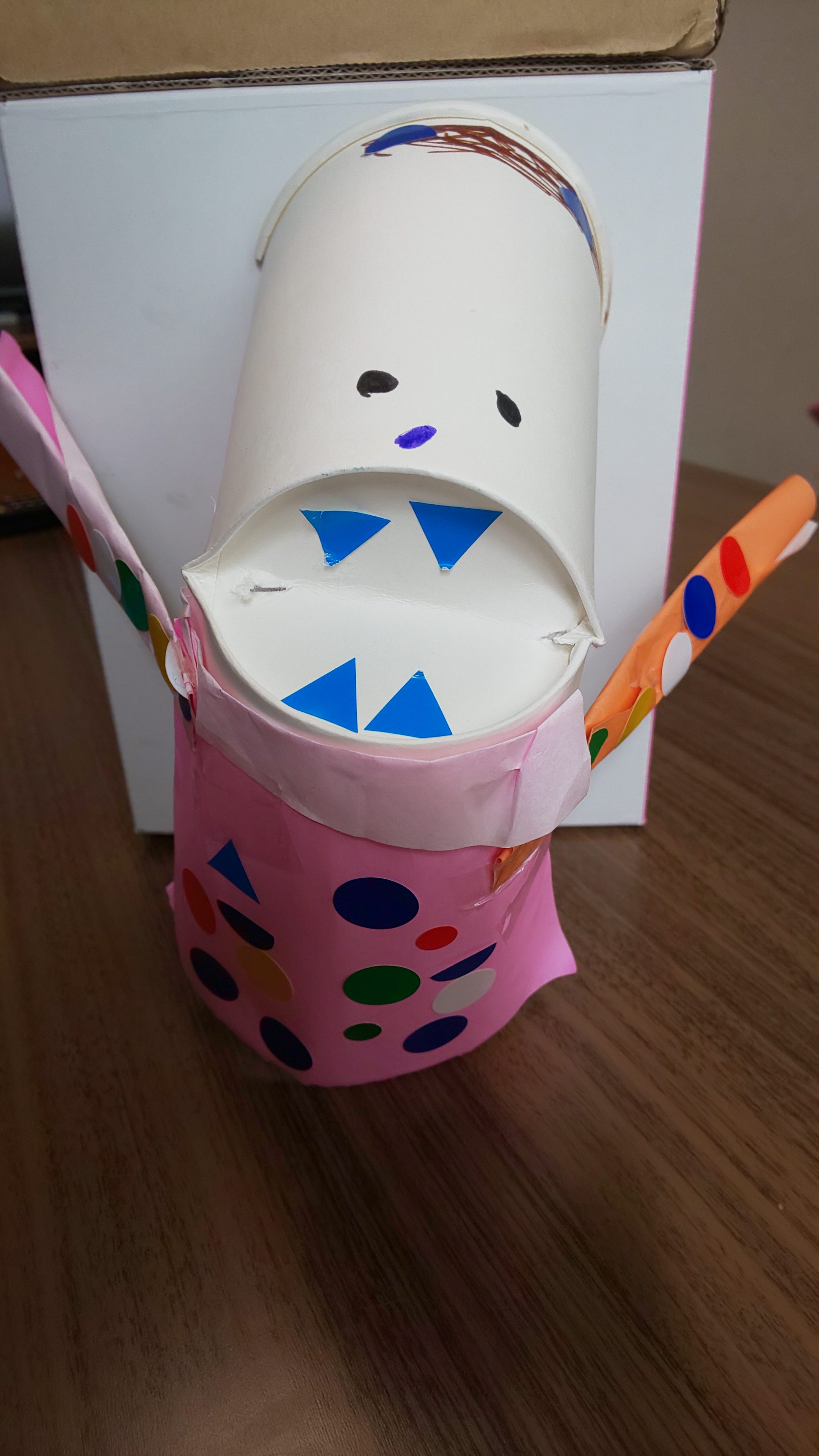 もちづきなおこ 先生2020年8月2日 6:49 PM かずくん、投稿ありがとう😊 かわいいかみこっぷんができたね! お洋服を着せたり、おててをつけたり、お話ししながらどんどん作っていってたね。 最後の方で貼った青い三角シールが、ほんとにいいチャームポイントになったと思います。 私が一番好きなところは、まゆ毛と前髪です。お目めと離れていて、おとぼけさんな雰囲気が、かわいいからです😍 ログインして返信する ↓