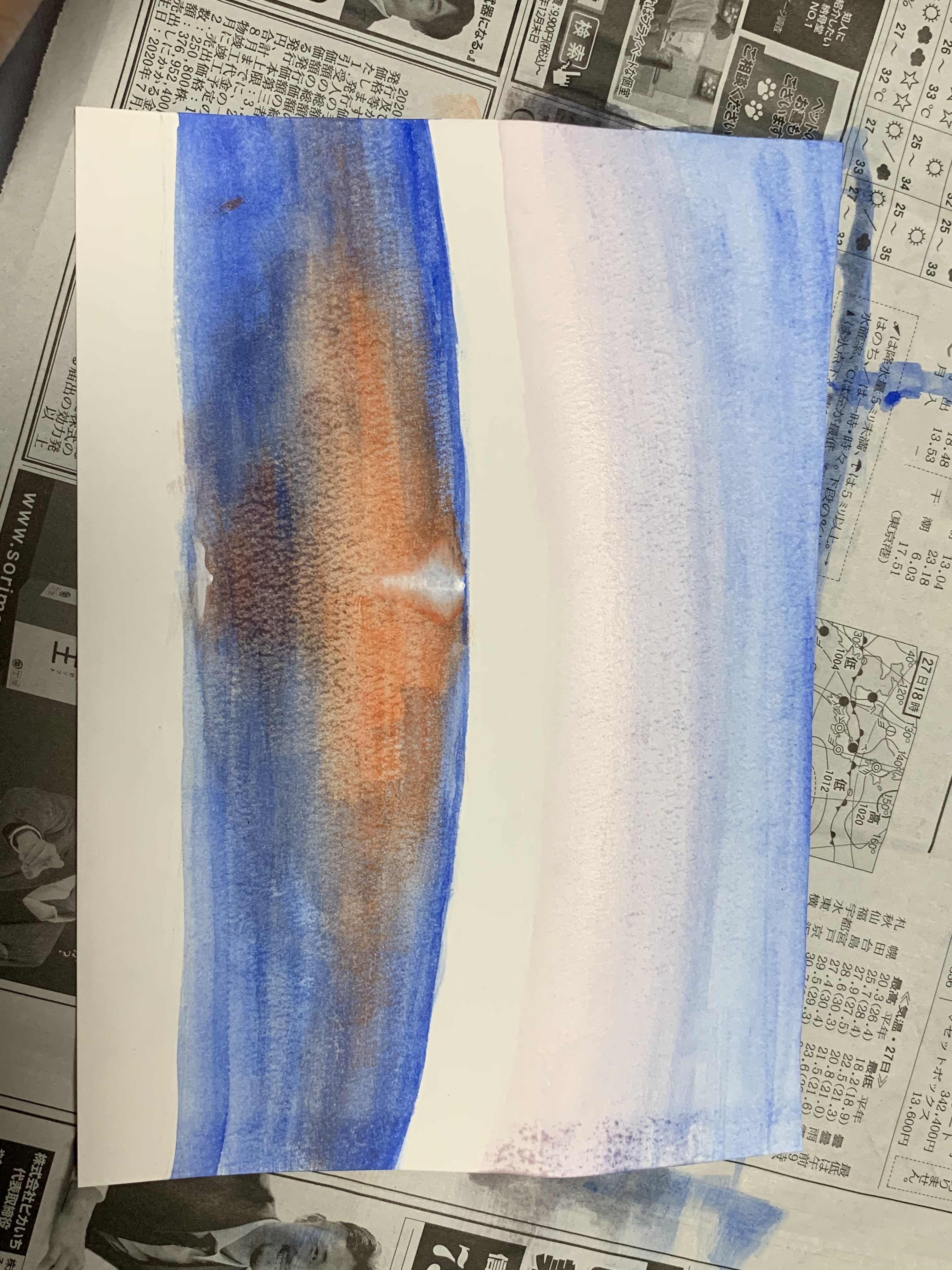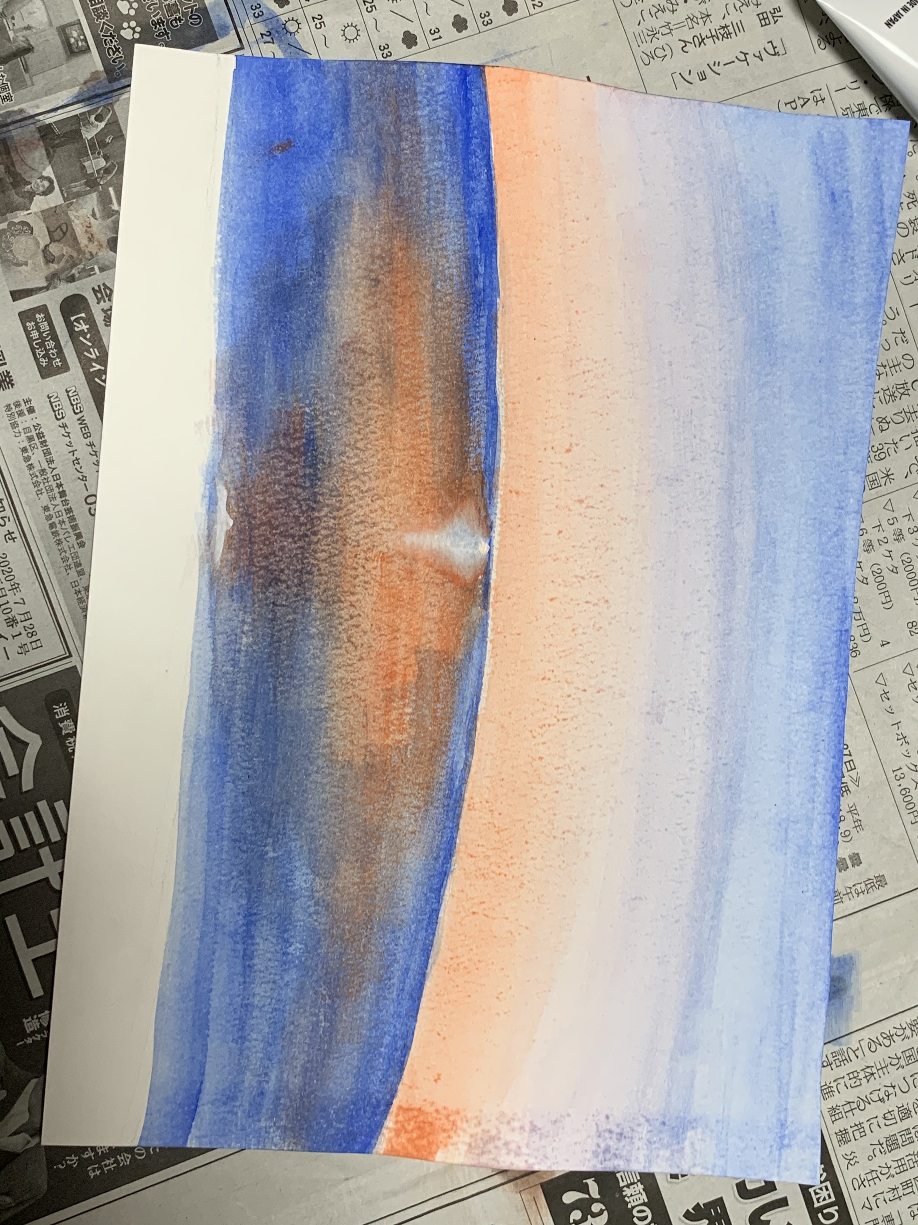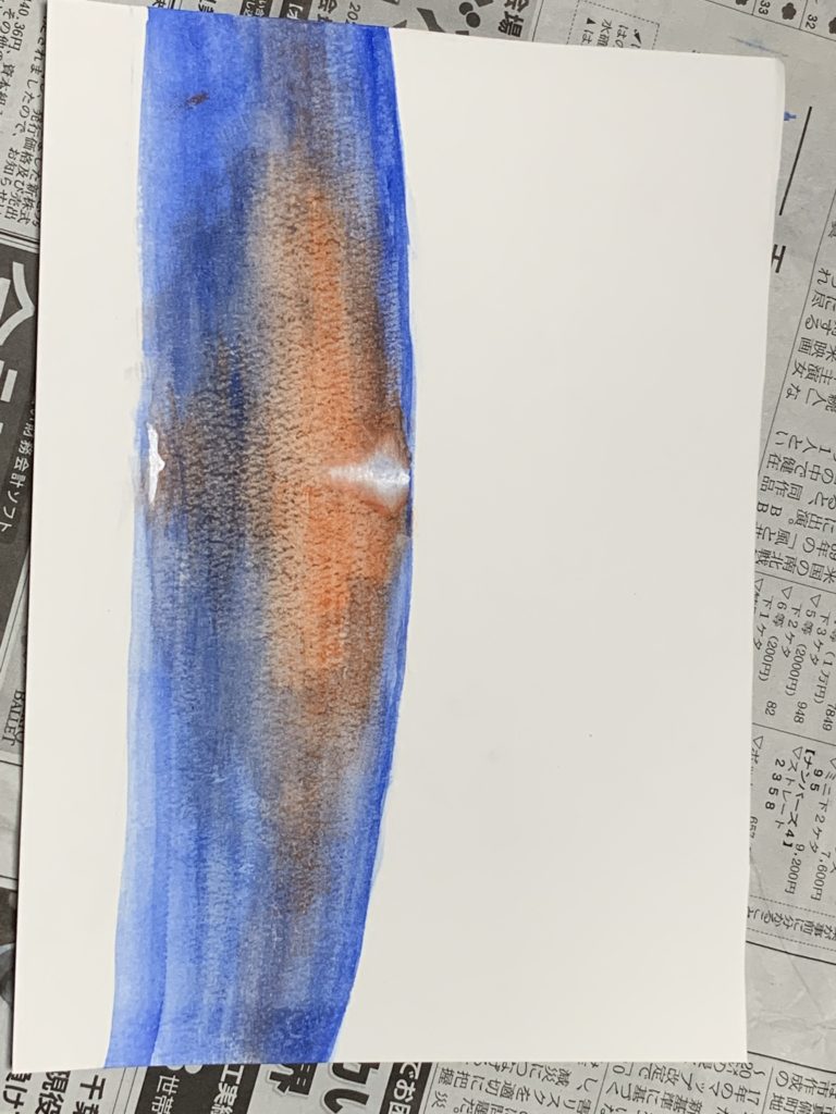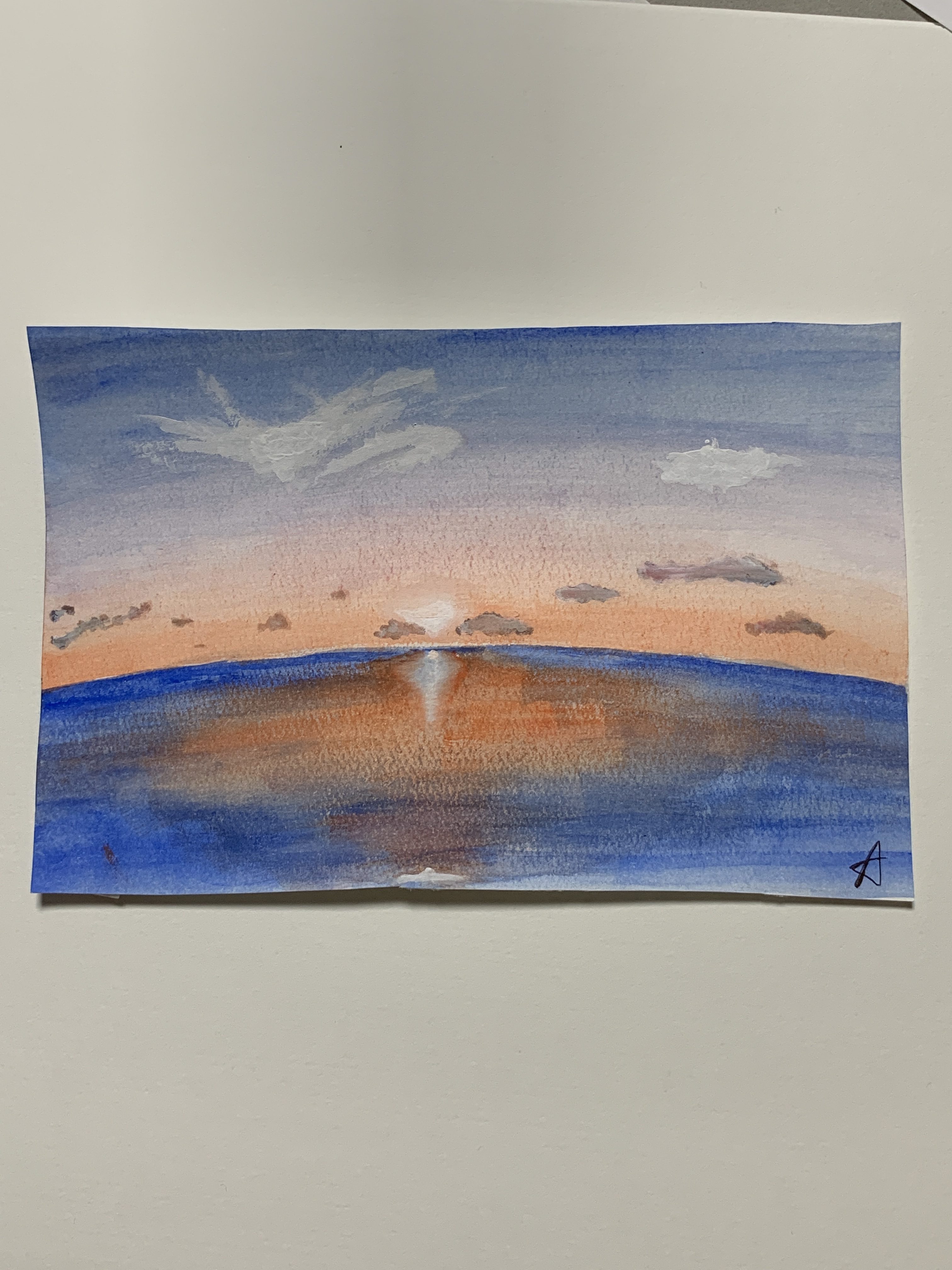 海に夕陽の光がうつっているのを描くのが難しかったです