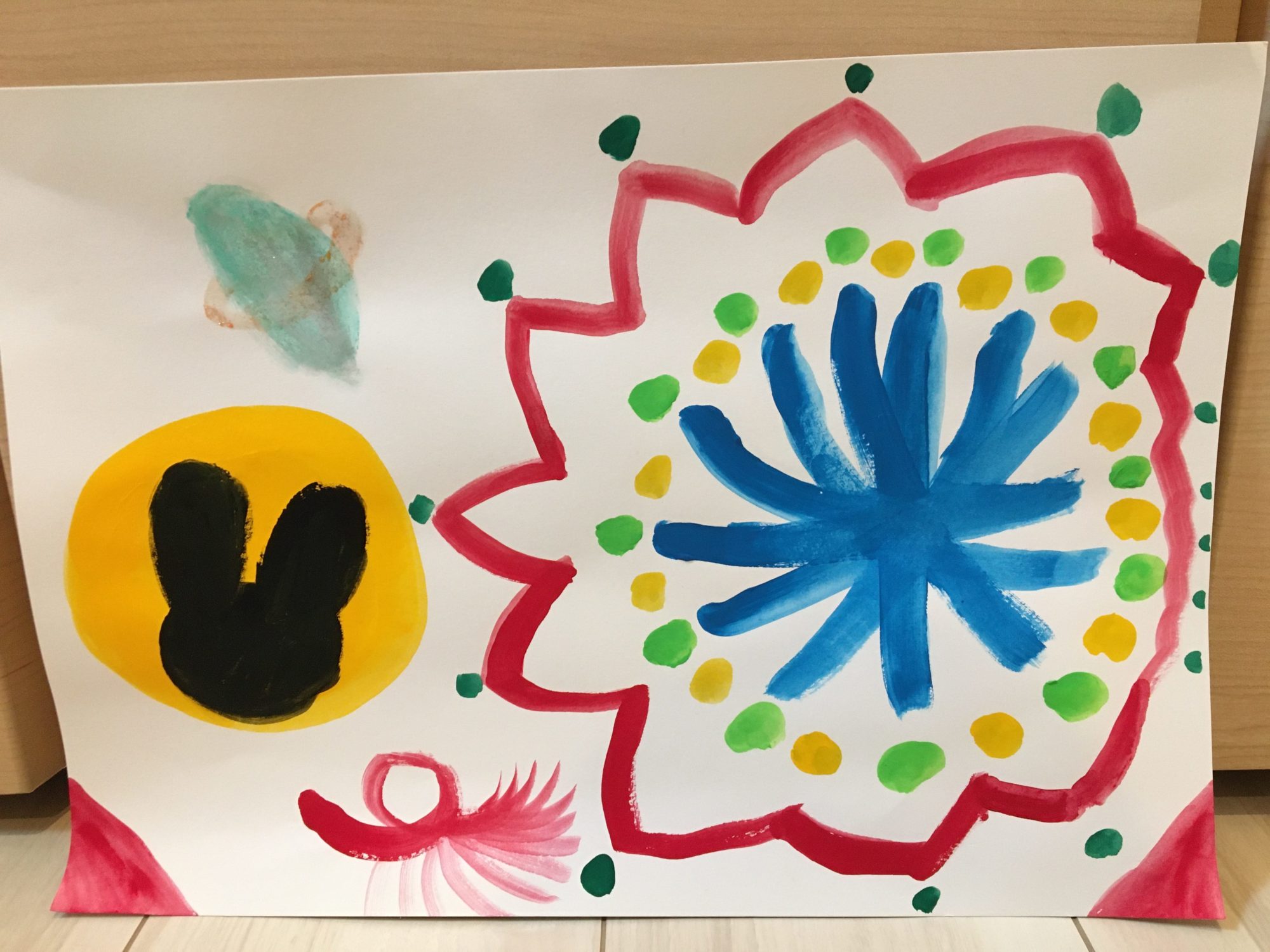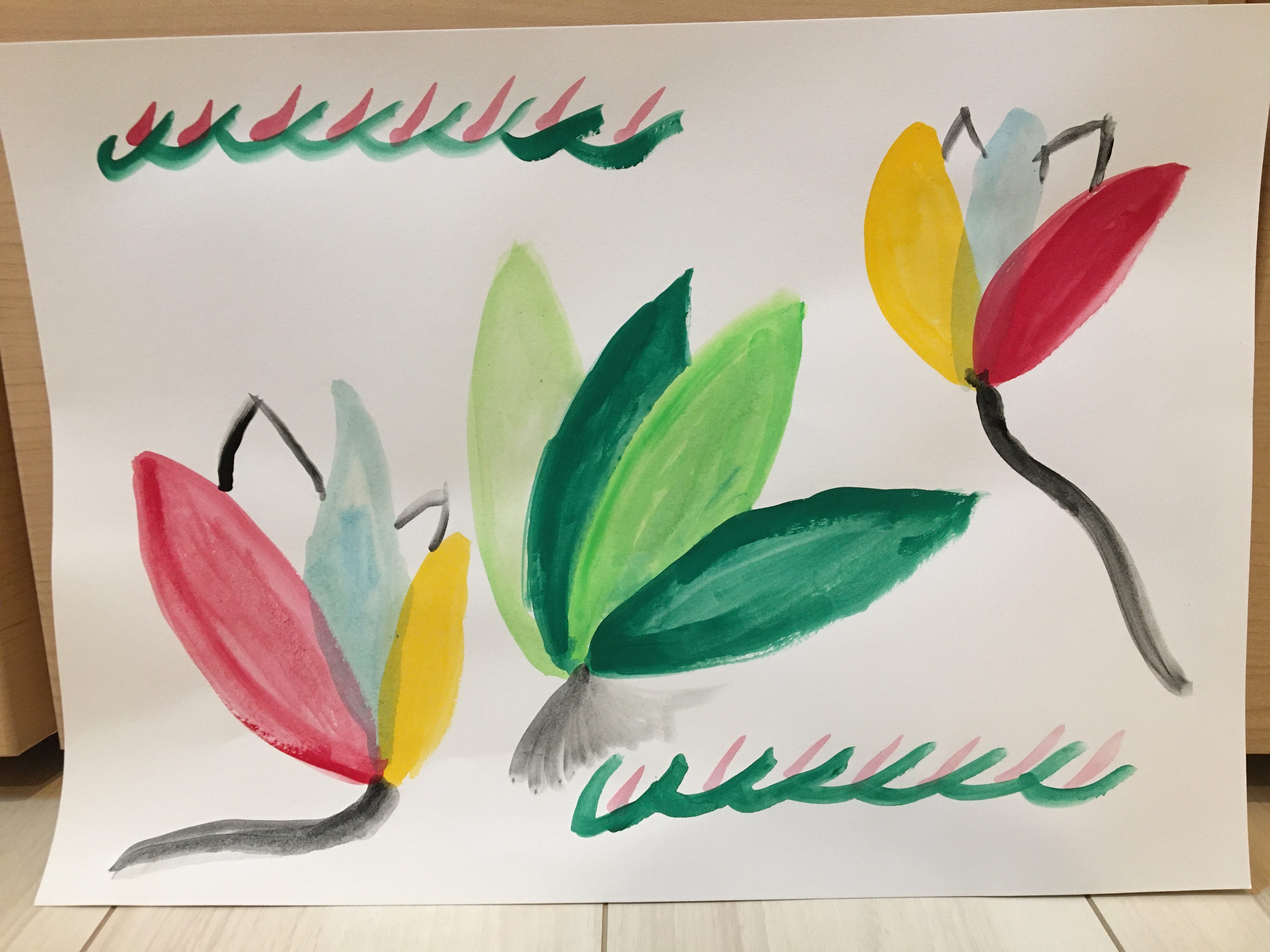 カラフルな葉っぱ/ 月と赤い花