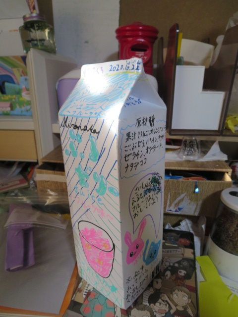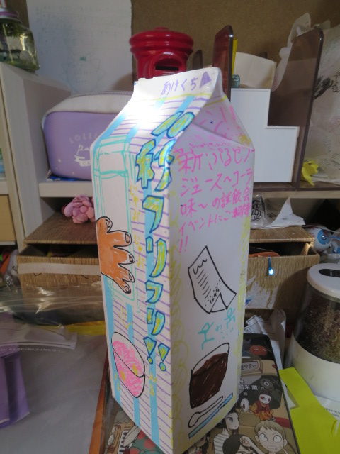 美術で作ったものです!(「牛乳パックのデザイン」で)