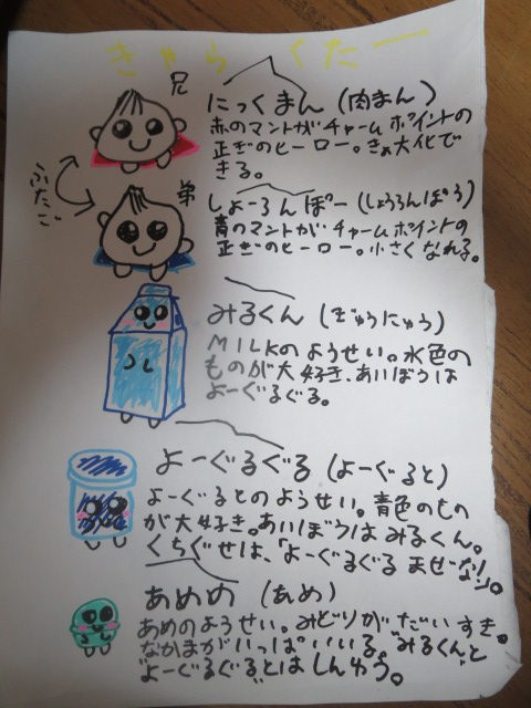 にっくまん、しょーろんぽーに、みるくん、よーぐるぐる、あめめです。