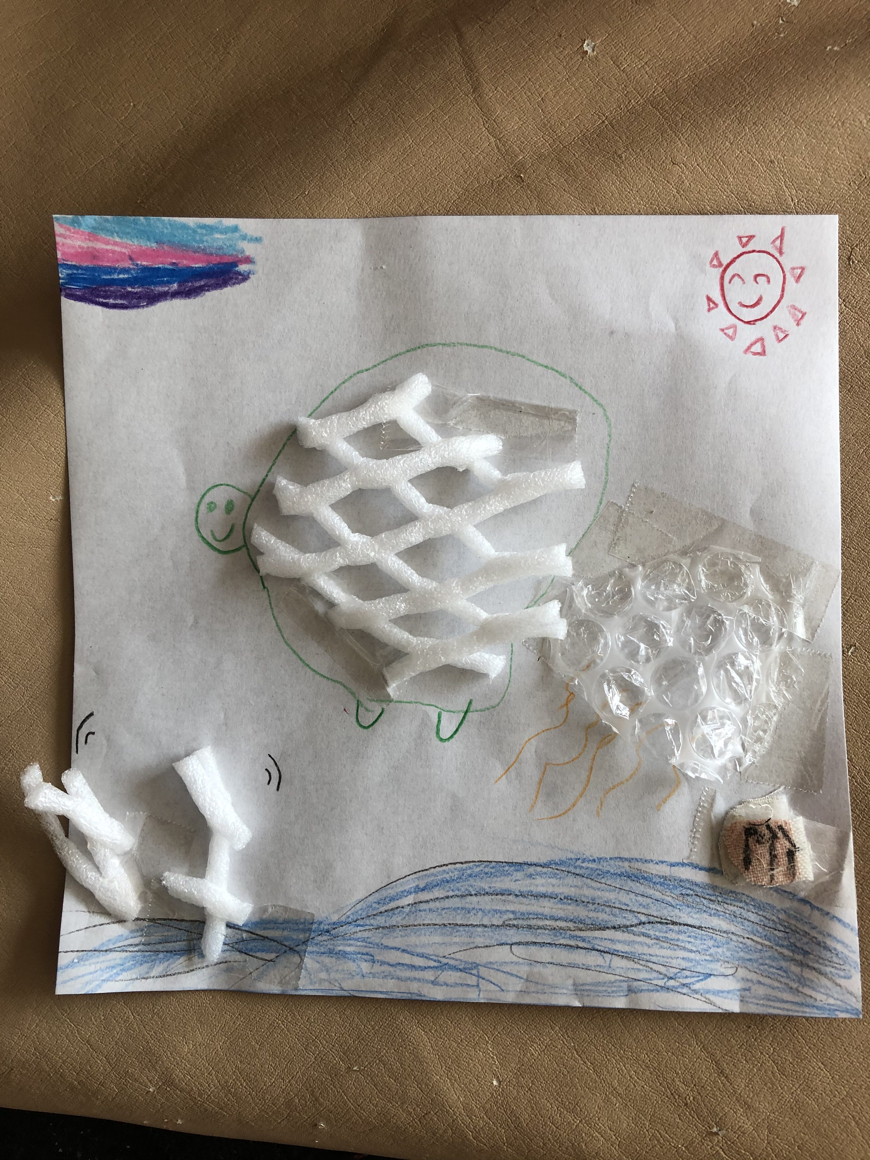 さわって楽しめるものを使って、海の楽しい様子を描きました。