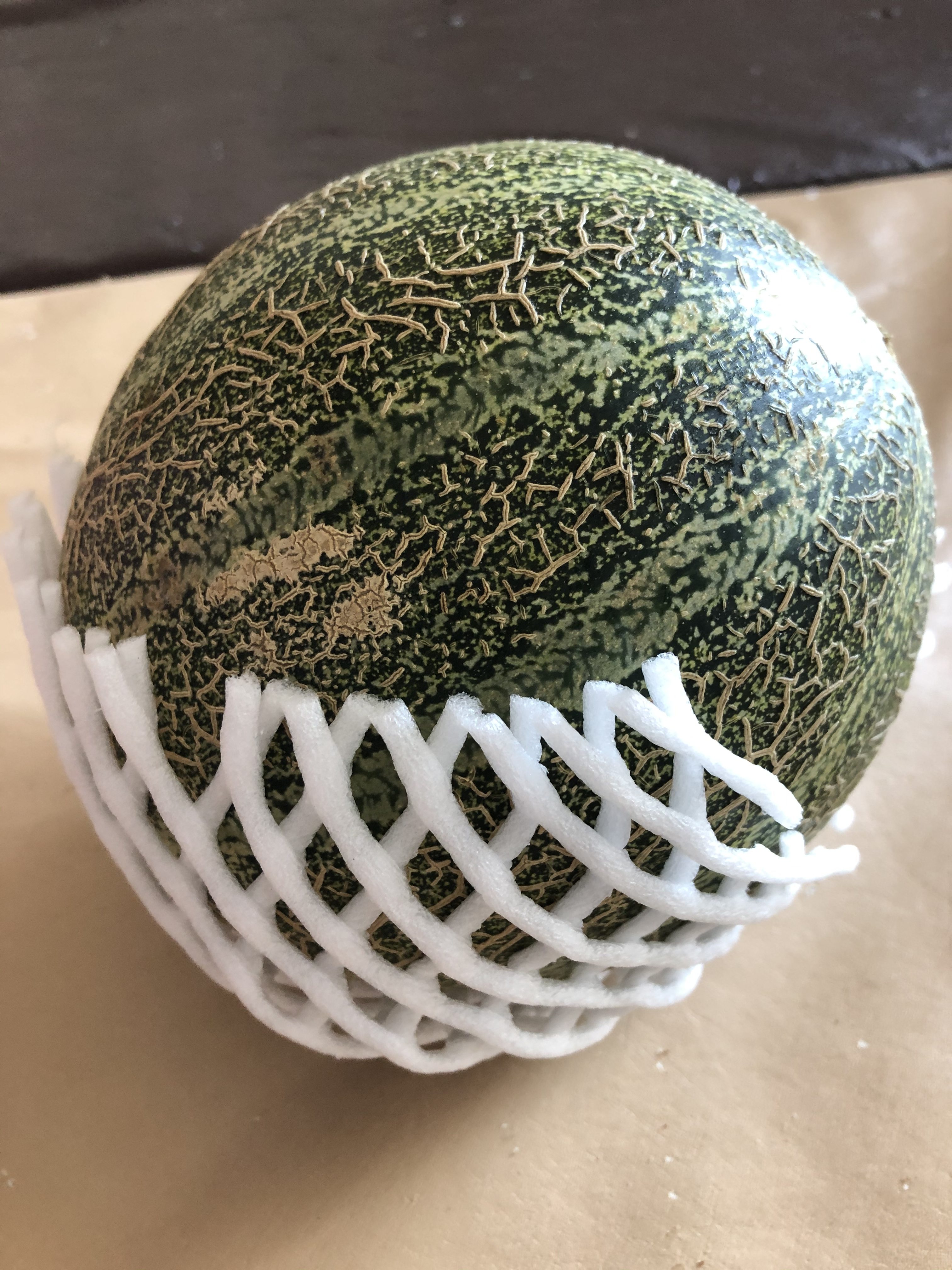 メロンやスイカが入ってるあみあみのものを切って貼りました。(写真2枚目です)