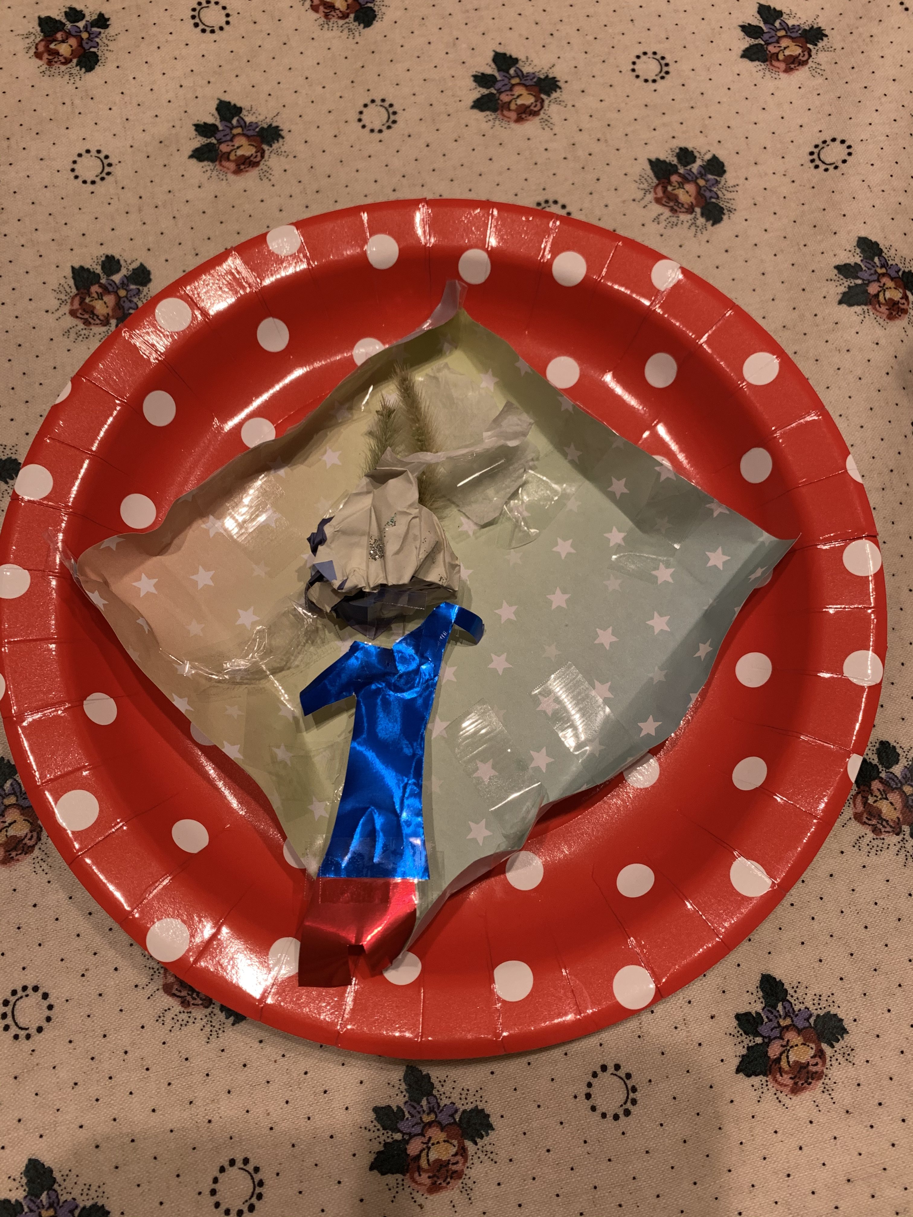 りぃちゃんの写真をみてどうなってるかな〜と考えてみましたが、まだよくわからなかったようで、王冠の切るところは手伝いました😅形ができると嬉しそうでシールをペタペタ、意欲をかき立てられたようで他のものも作っていました☺️