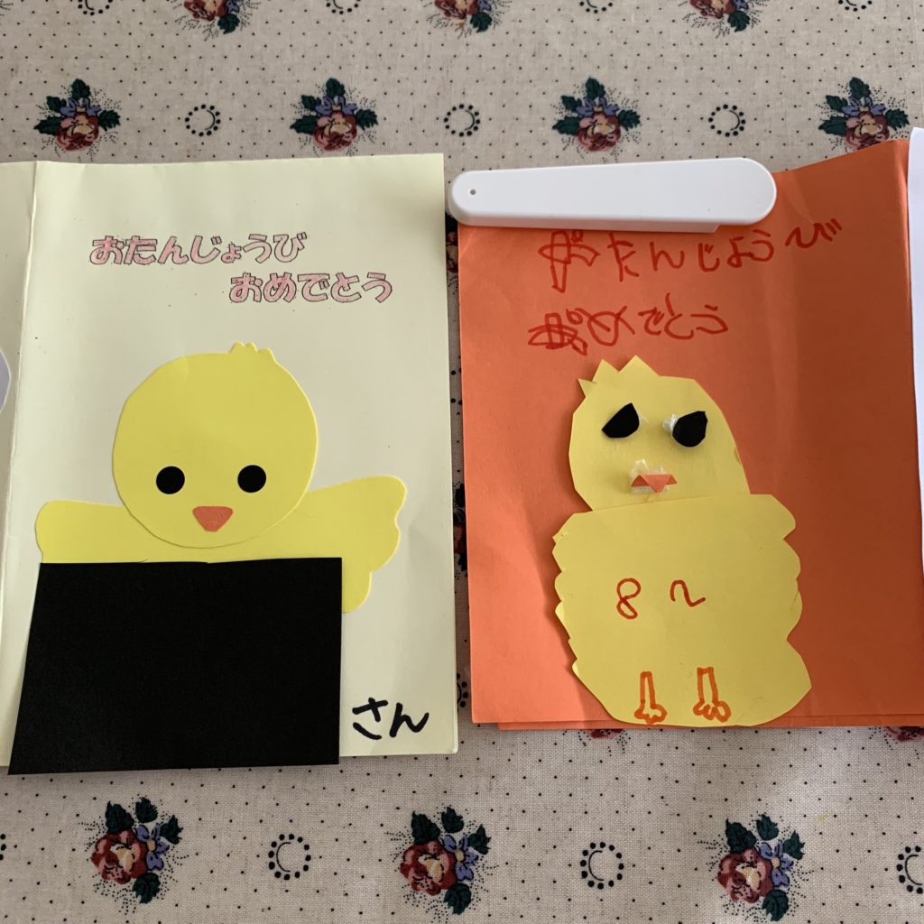 幼稚園で先生からもらったお誕生日カードを真似して作りました。