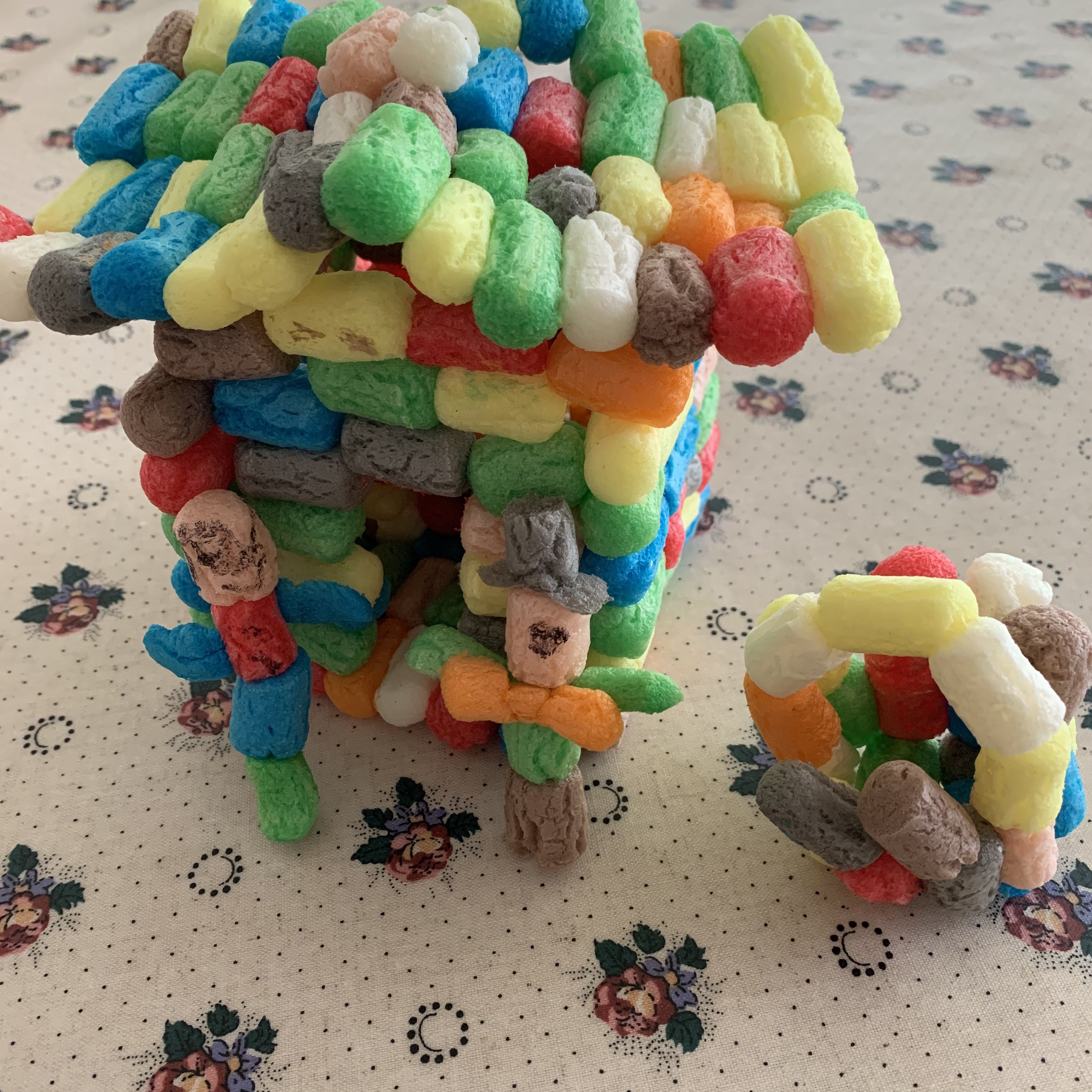 プレイマイスという水でつけられる素材を使ってお家と人、かごを作りました。