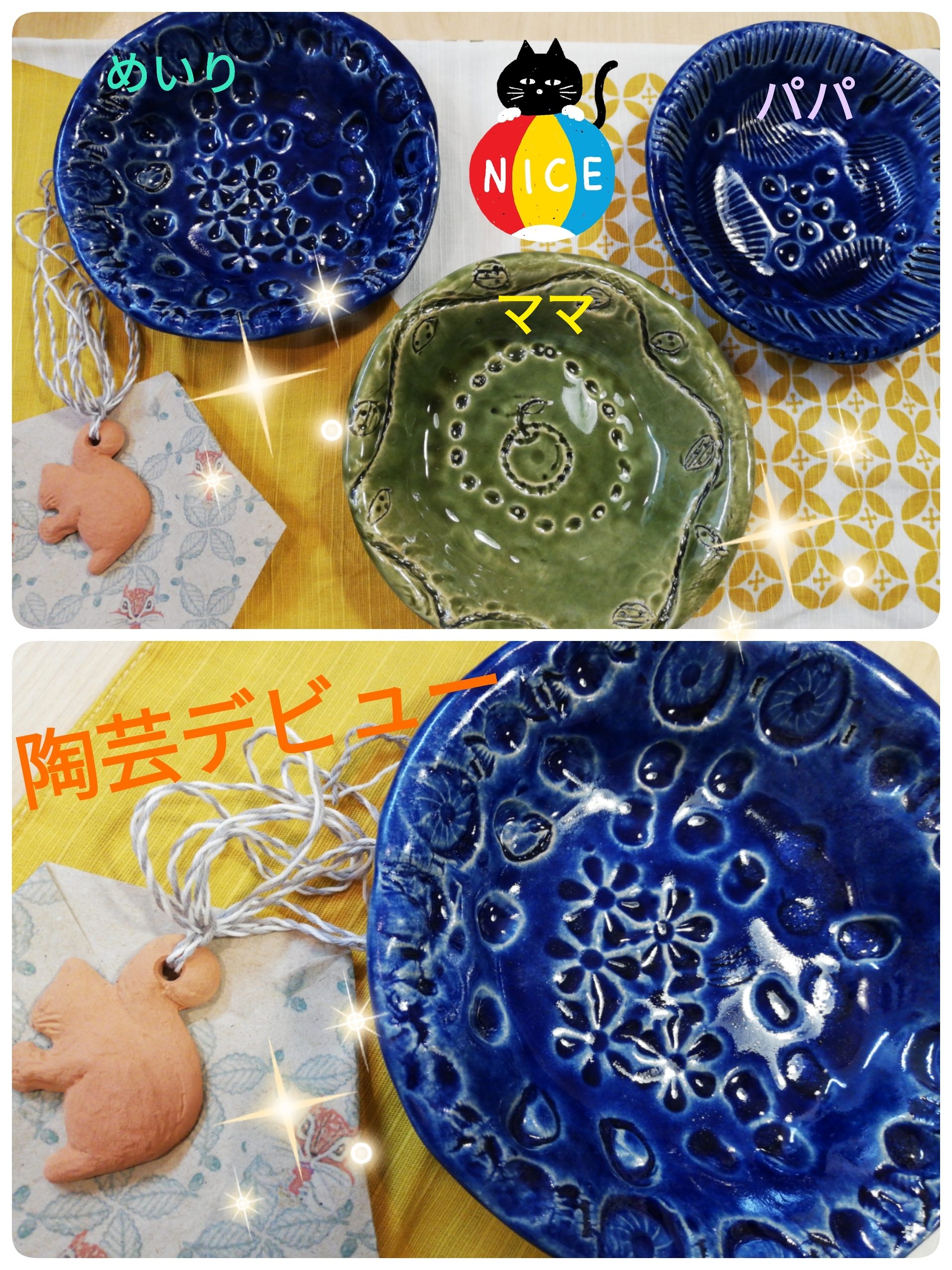 2020年9月15日 10:25 AM meiriちゃん、お母さま、ご投稿ありがとうございます⭐️ この作品で陶芸デビューなのですね! 皆様、とても初めてとは思えないクオリティーでオドロキです・・・! 世界にひとつだけのお皿をぜひたくさんご活用くださいませ☺️ ログインして返信する ↓