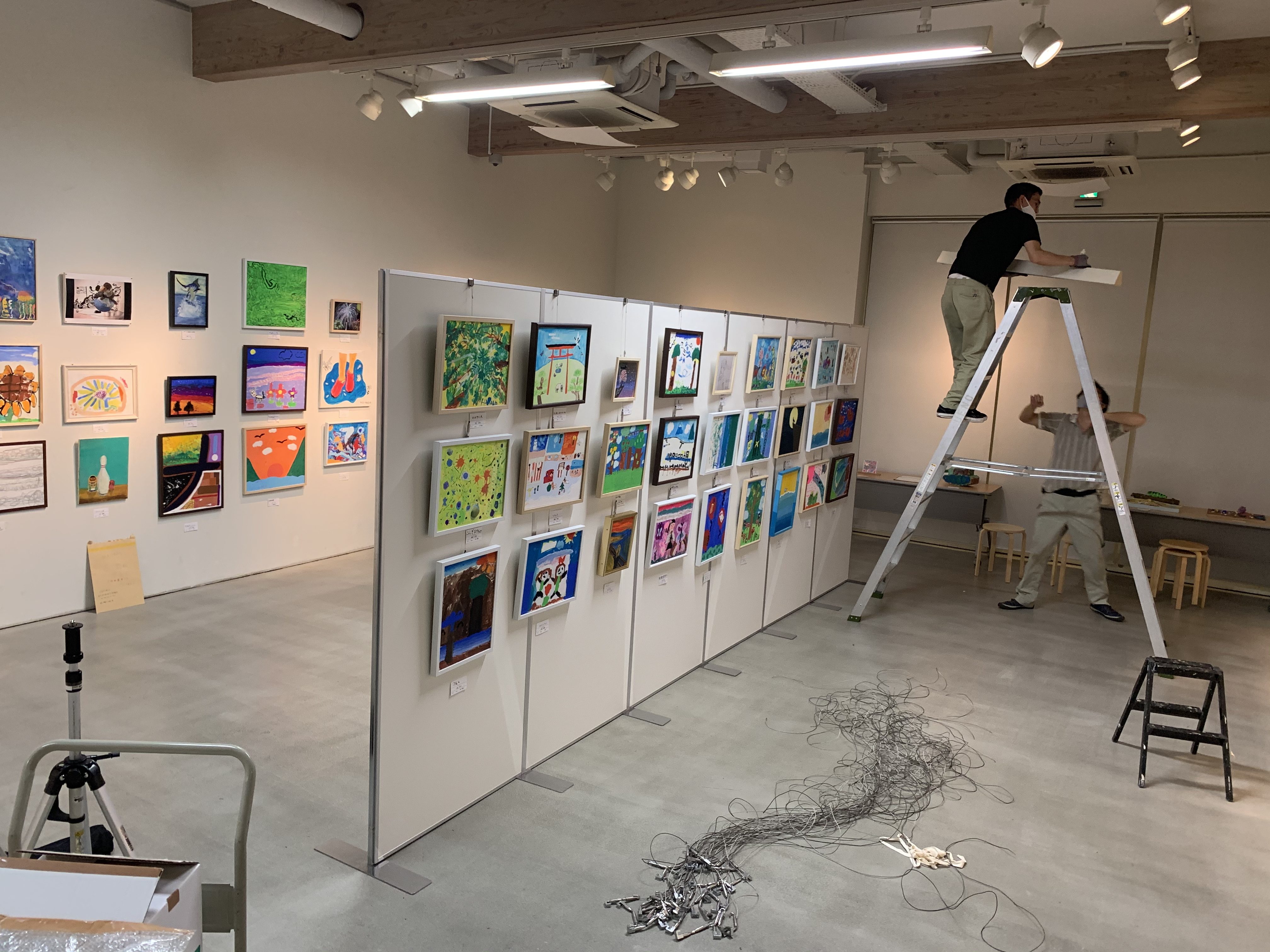 上野の森美術館ギャラリーにて本日美術館スタッフさん、ヤマト運輸の展示搬入スタッフさんの手でみんなの作品がずらりと飾られました!