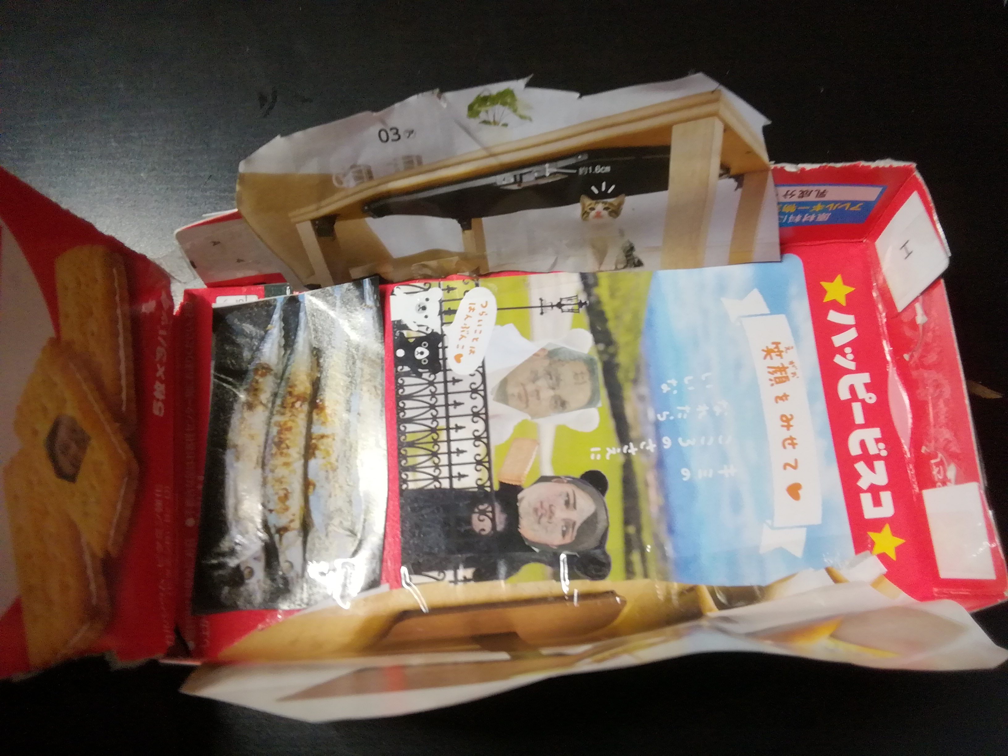 なんと言うことでしょう、ビスコの空き箱が匠(笑)の手によりカオスなカフェに