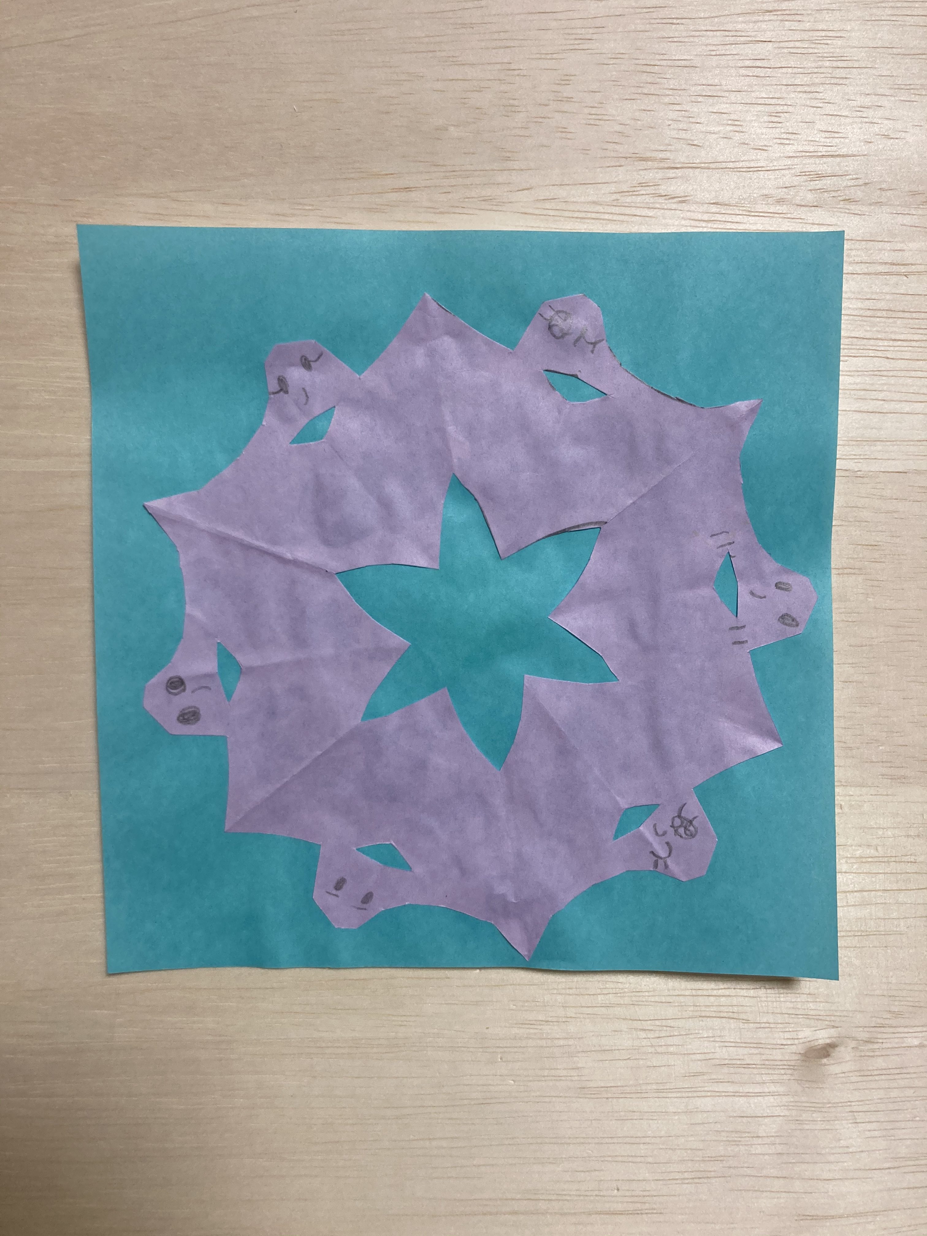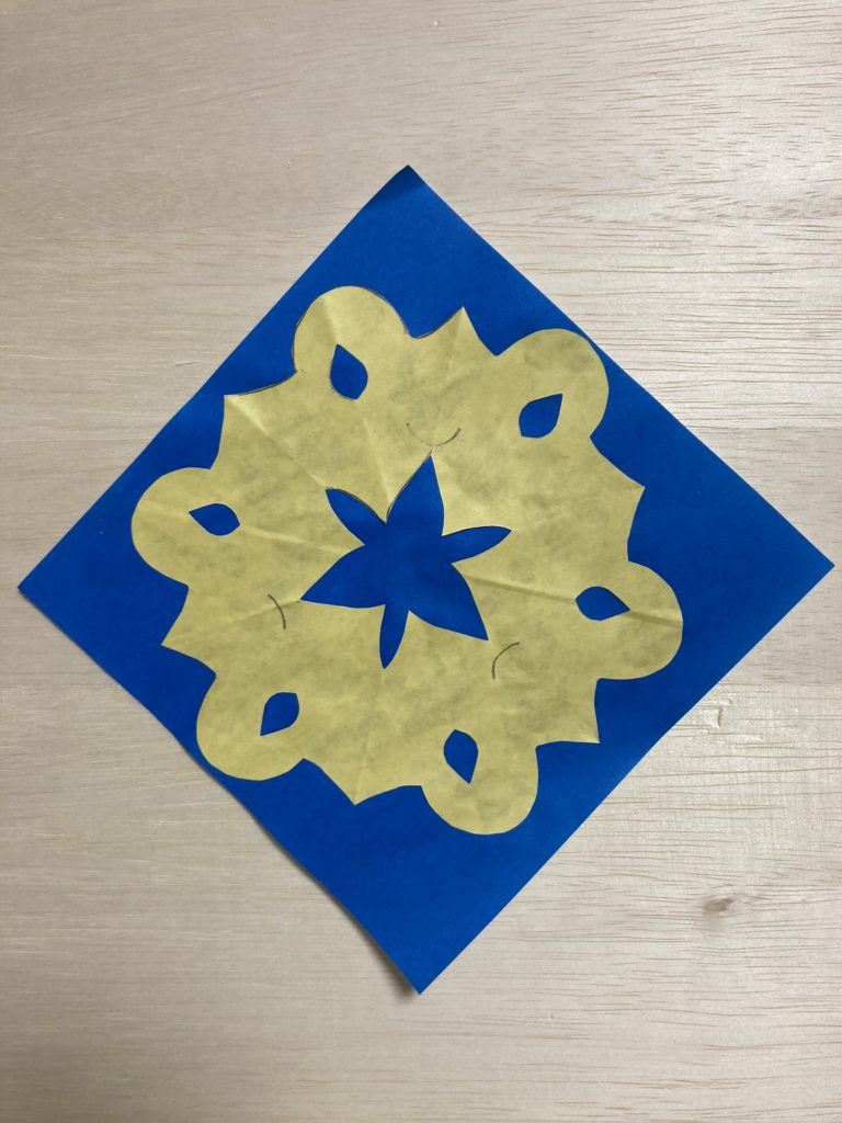 YouTubeのライブをみて、チャレンジしてくれたんですね! うれしいな! できあがりをかんがえながらはさみできっていくので、ひろげてみてのおたのしみというかんじでもあるんだよね! おばけがつながっているのが、すごくかわいいよ!