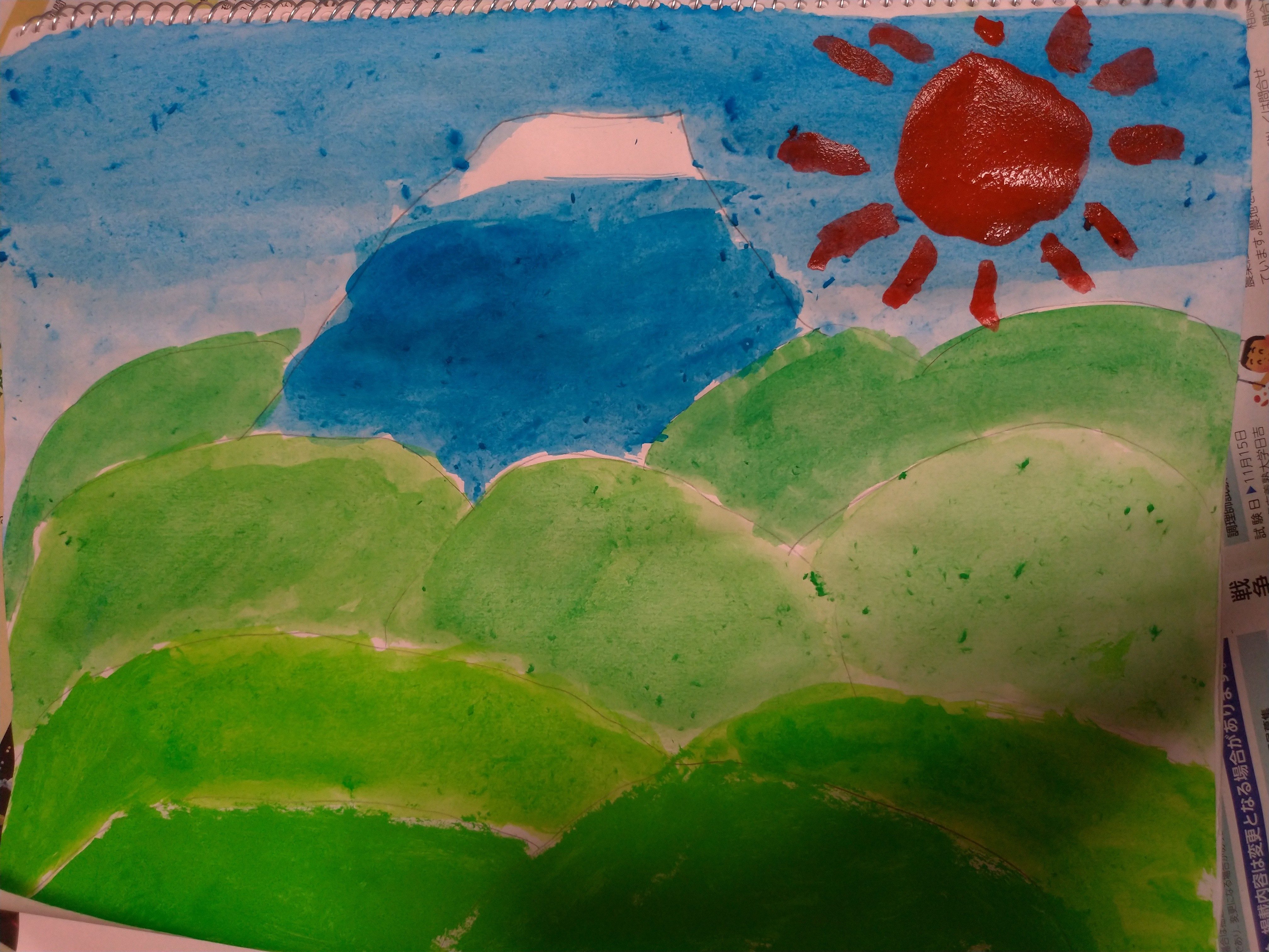 空気遠近法を、バッチリ マスターしていますね!遠くへいくほど、絵の具をうすくしていく水の量の調節がとても上手です。