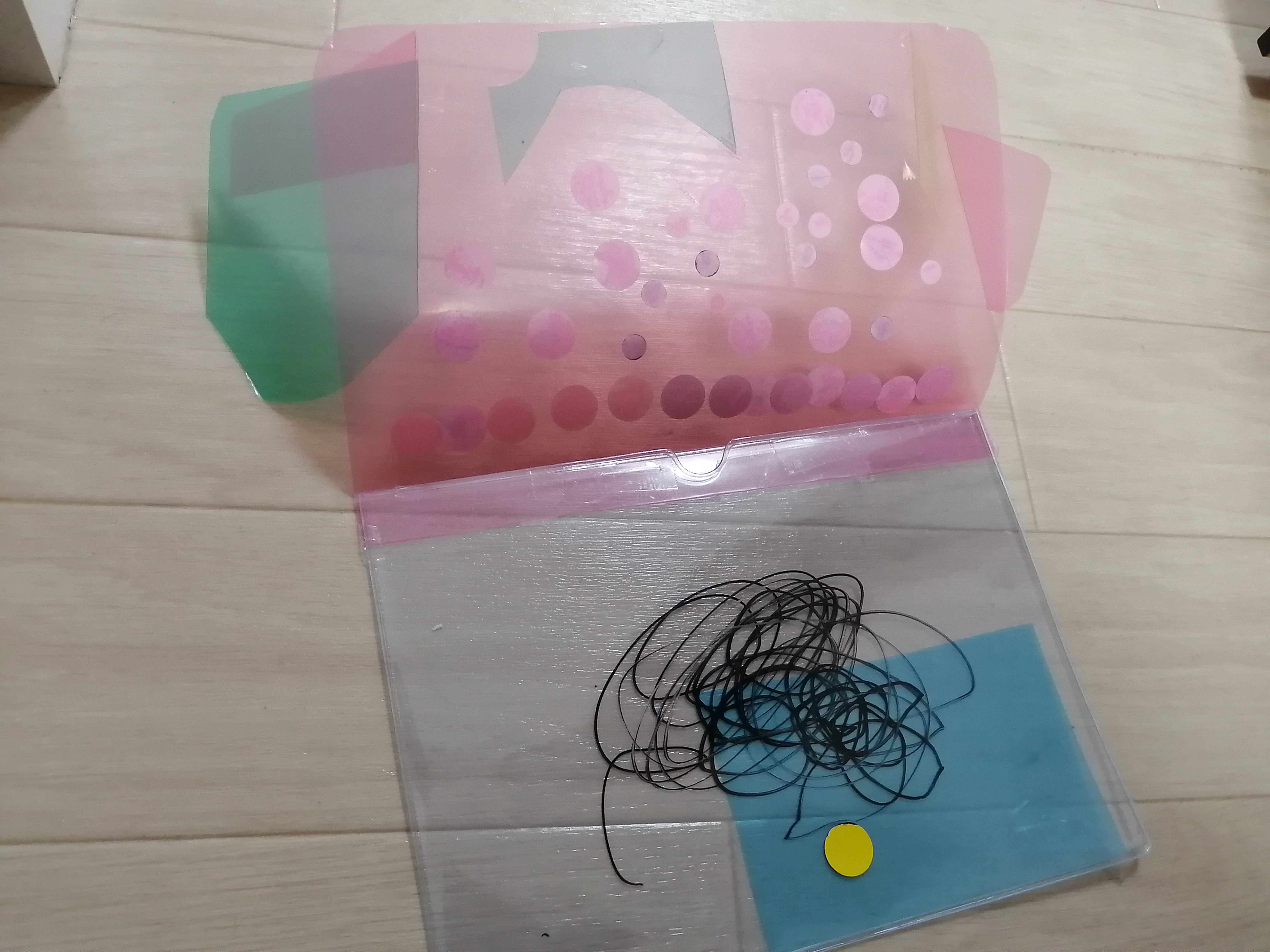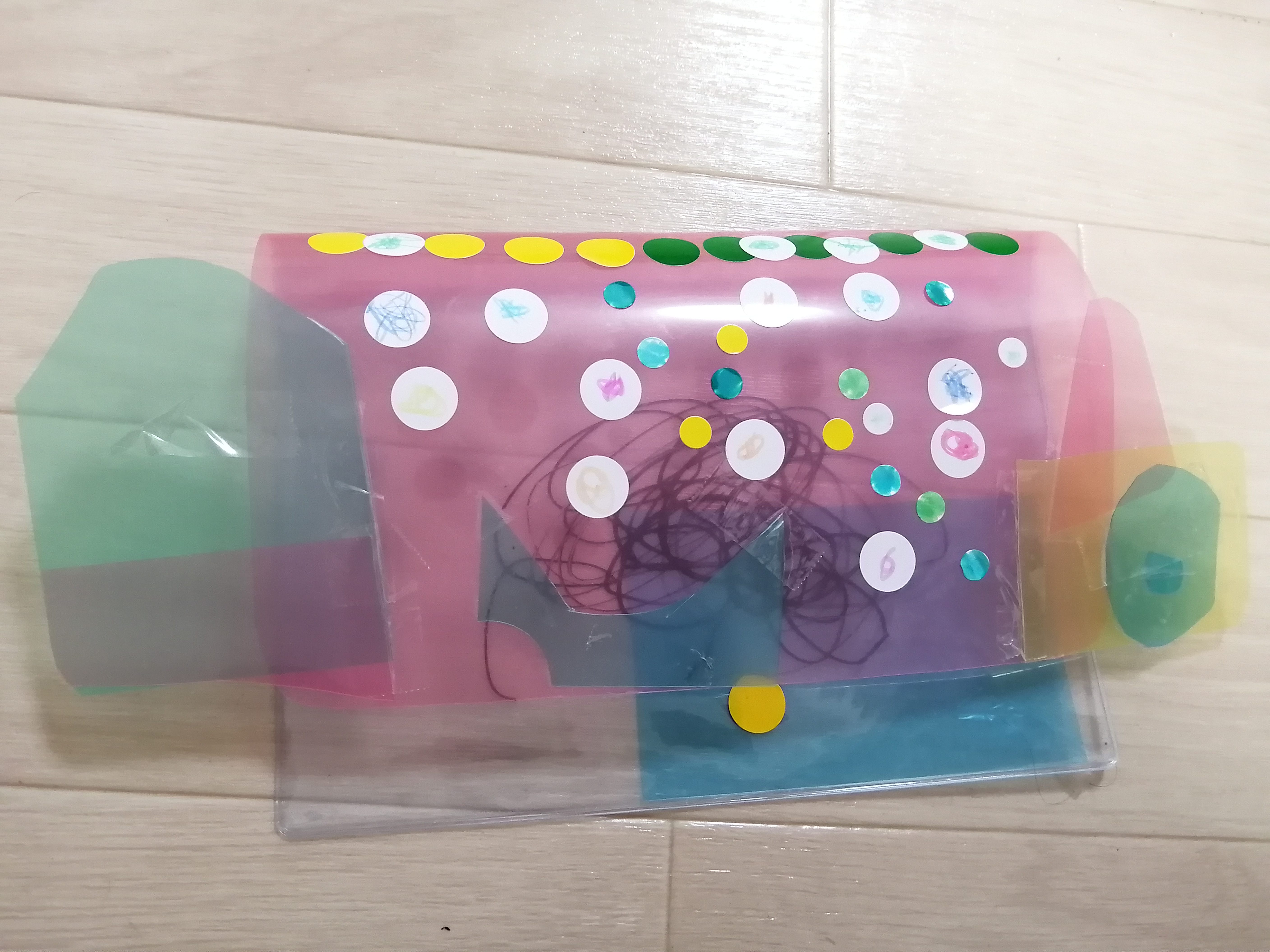 いろんないろのクリアファイルをかさねばりしてみたのかな?!