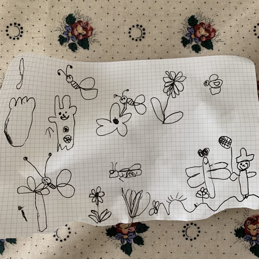 くるみちゃんは虫さんも平気なんだね!先生は少し苦手だけどこのお絵かきなら大丈夫そう