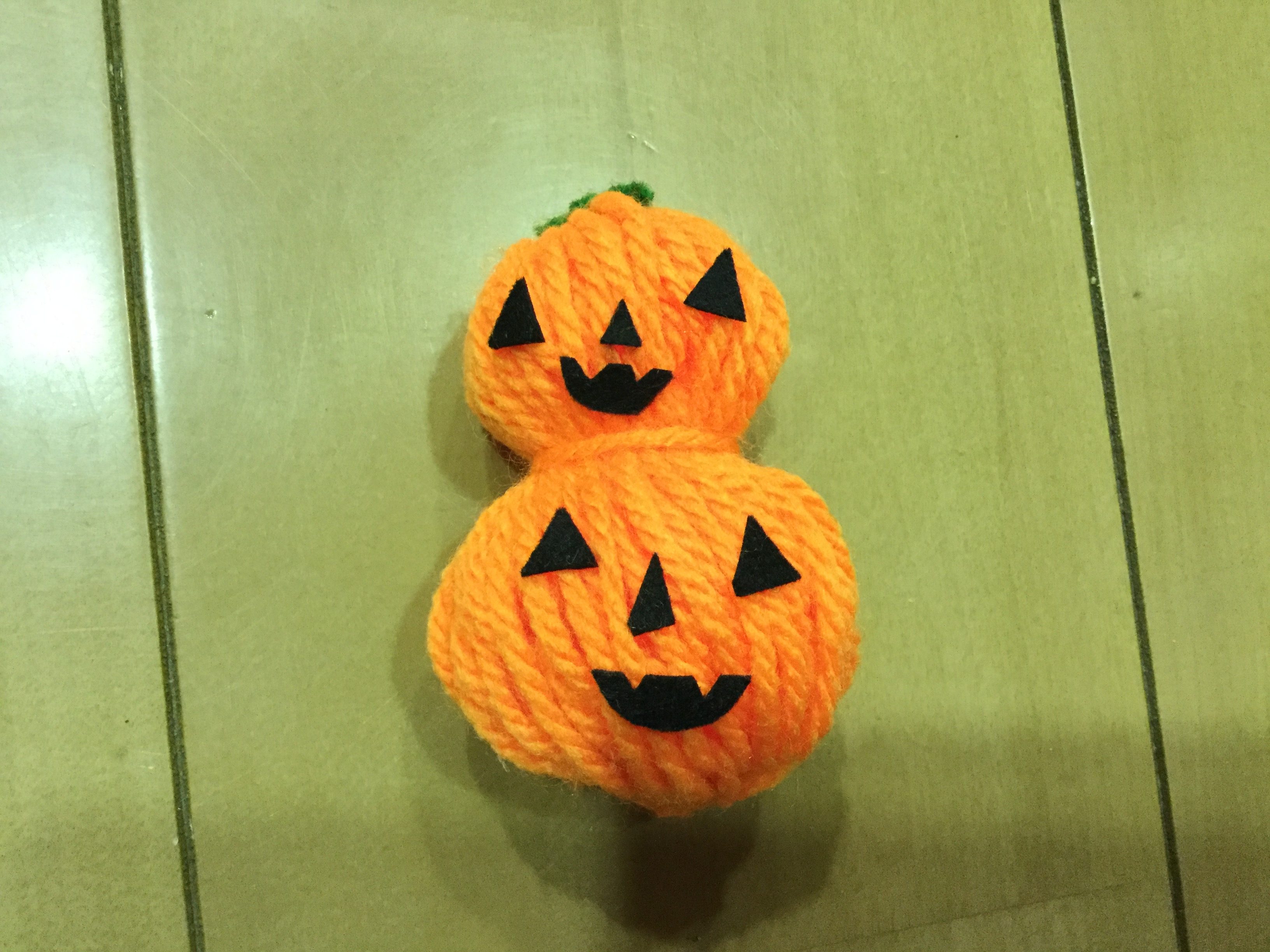 毛糸の真ん中を縛って2段カボチャになっているので