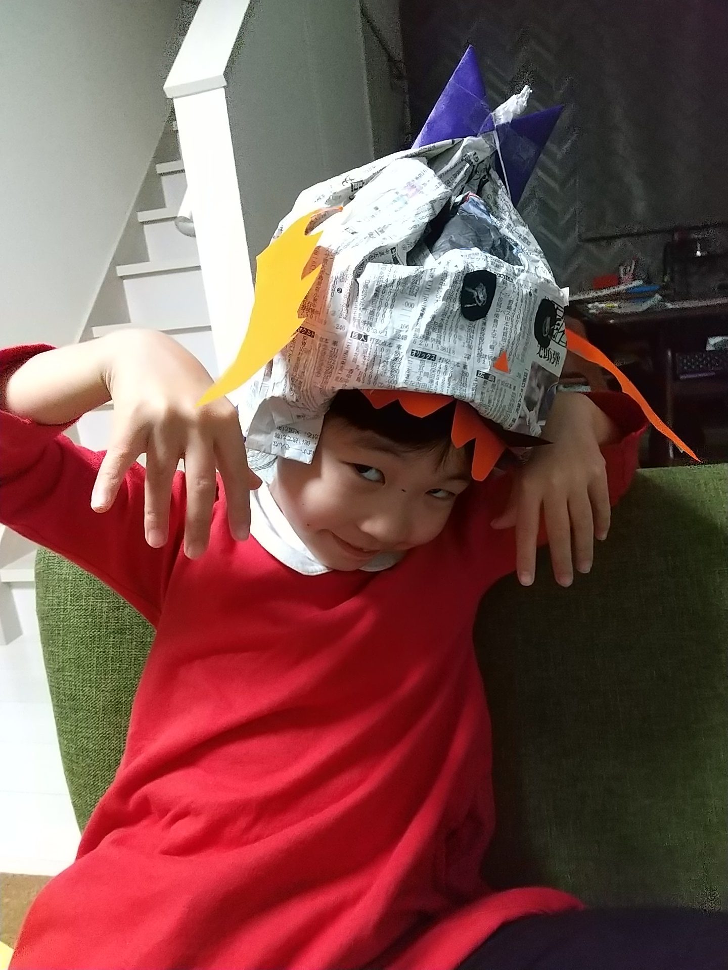 しんぶんしでこんなふうにじょうずにつくれるんだね! すごいな! これでみんなをびっくりさせて、おかしをもらっちゃおう!