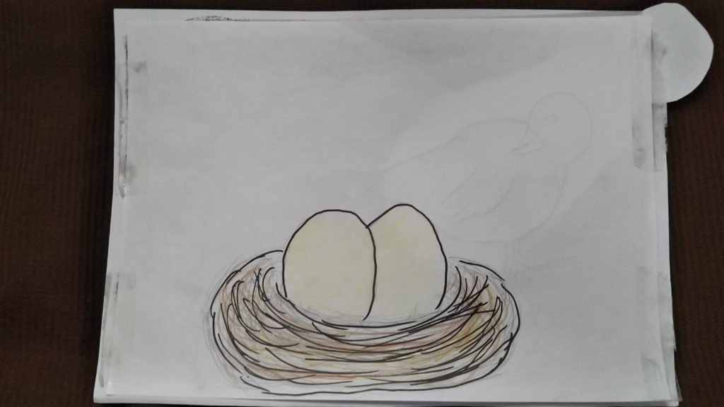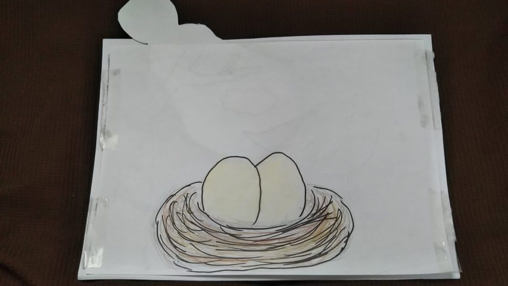 ライトでてらすと、タマゴをみまもるおやどりのすがたが!