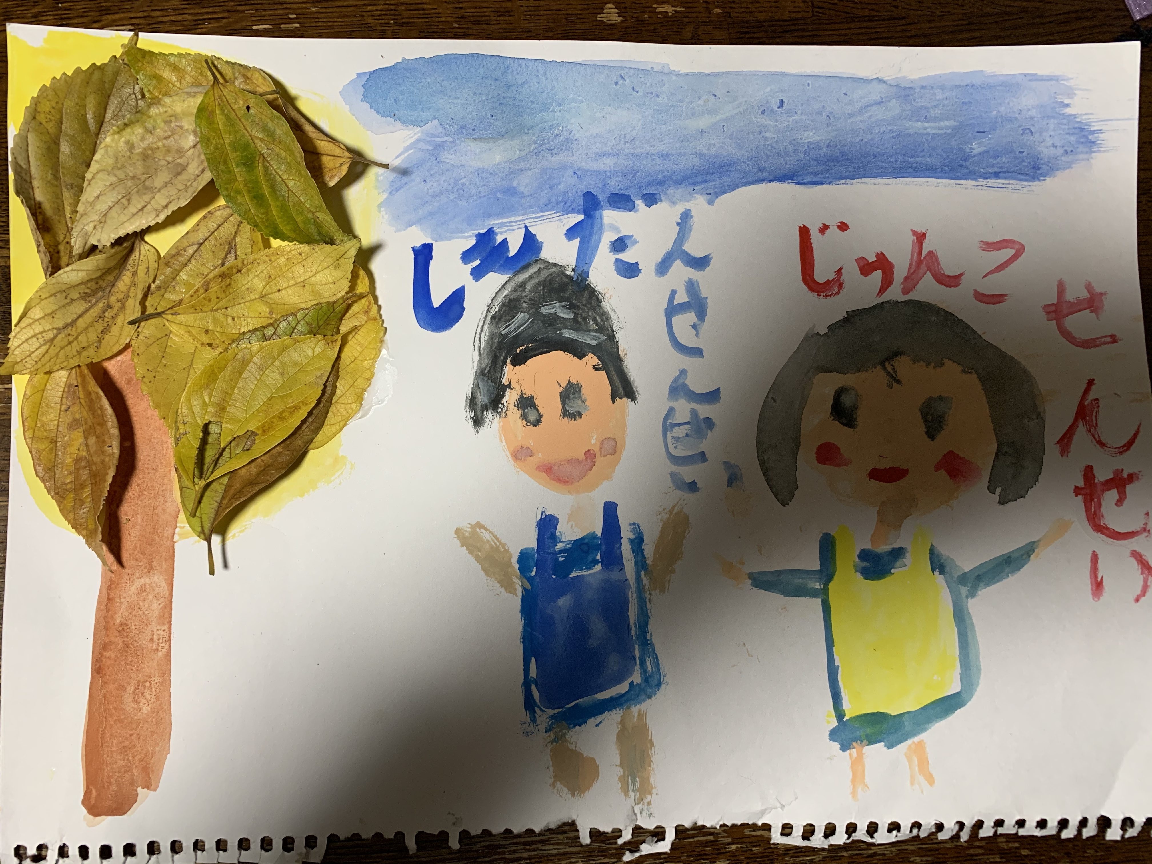 おちば、すてきにはって、あきのきれいな きがかけたね!!