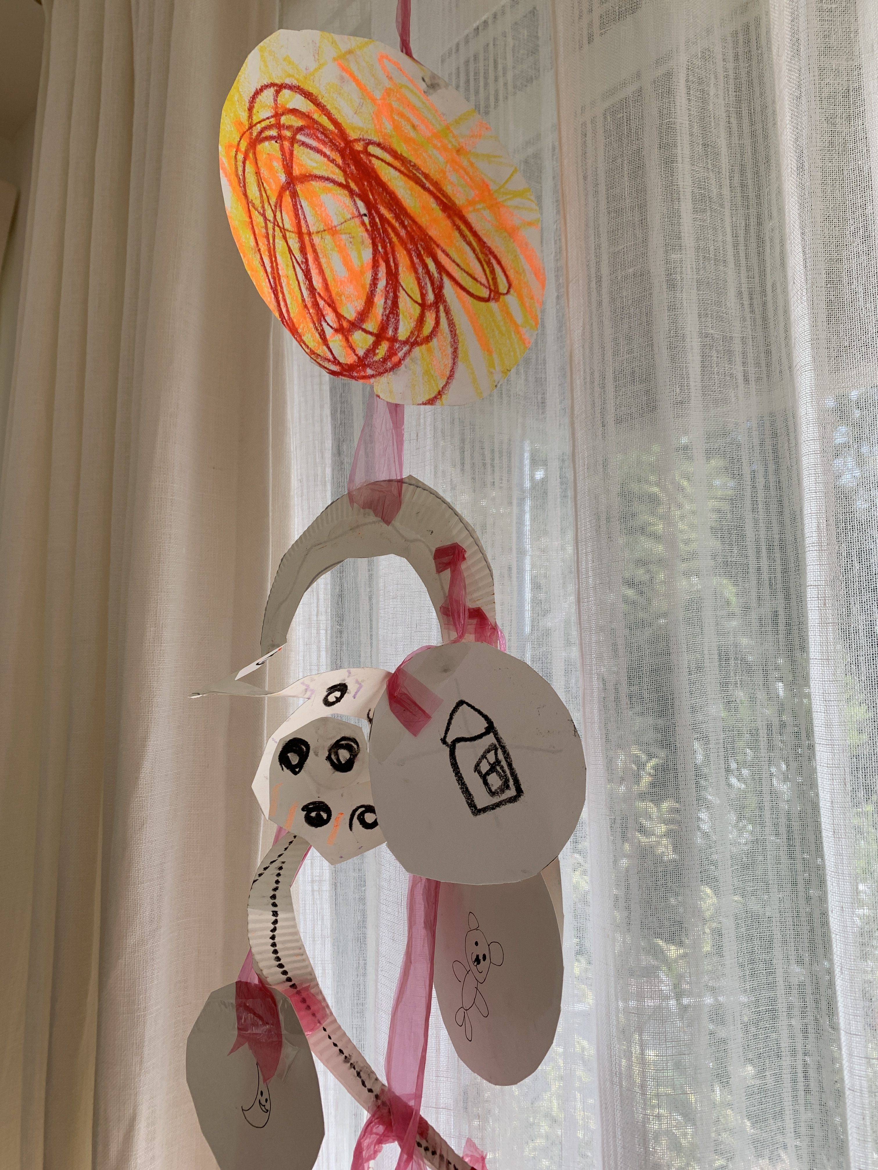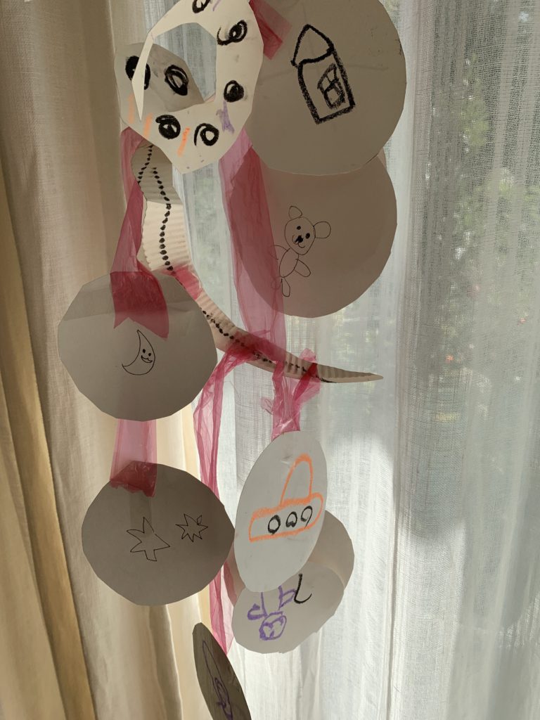UFO、月や星、宇宙人などたくさん、勢いよく描いて吊るしていました。