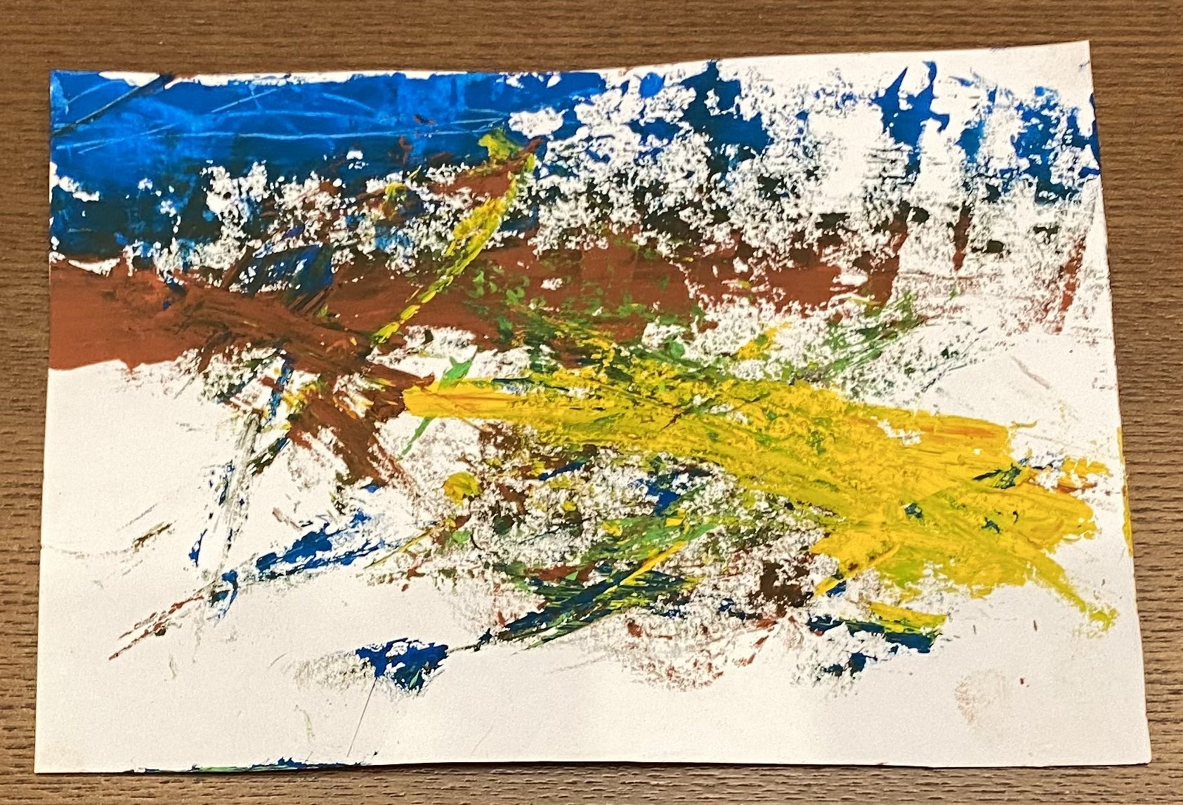 はづきせんせい チャイルドアートサポーター2020年11月26日 12:00 PM よくみたら風景のようにみえる。 海が広がっているようにみえる! てきとうと書いているけど、ナイフは、しっかり絵の具のあとを残してくれるよね。 おもしろいです! ログインして返信する ↓