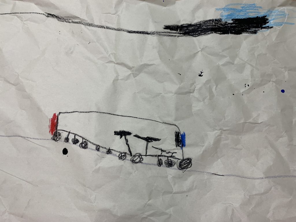 バスはながーいみちを はしっていくんだね。たすくんはのってるのかな?