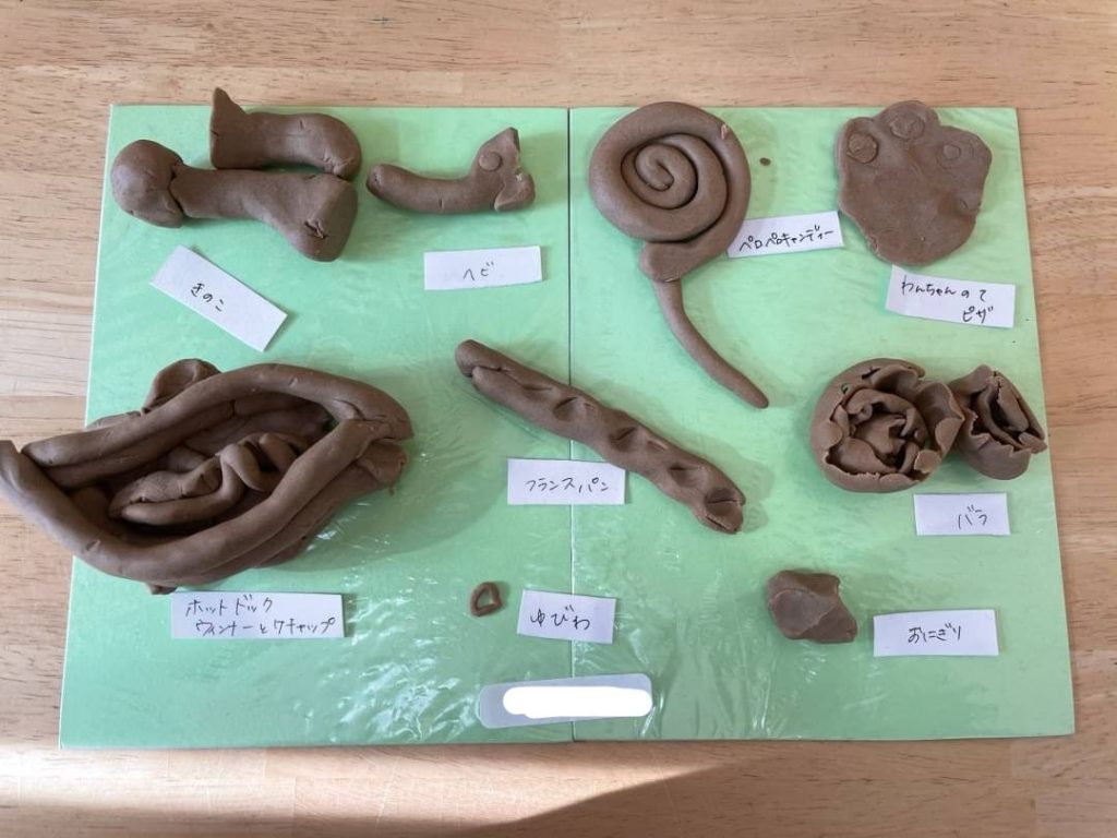 油粘土、お友達も恐竜や虫、乗り物、食べ物など思い思いに作っていて、見ていて楽しかったです♪