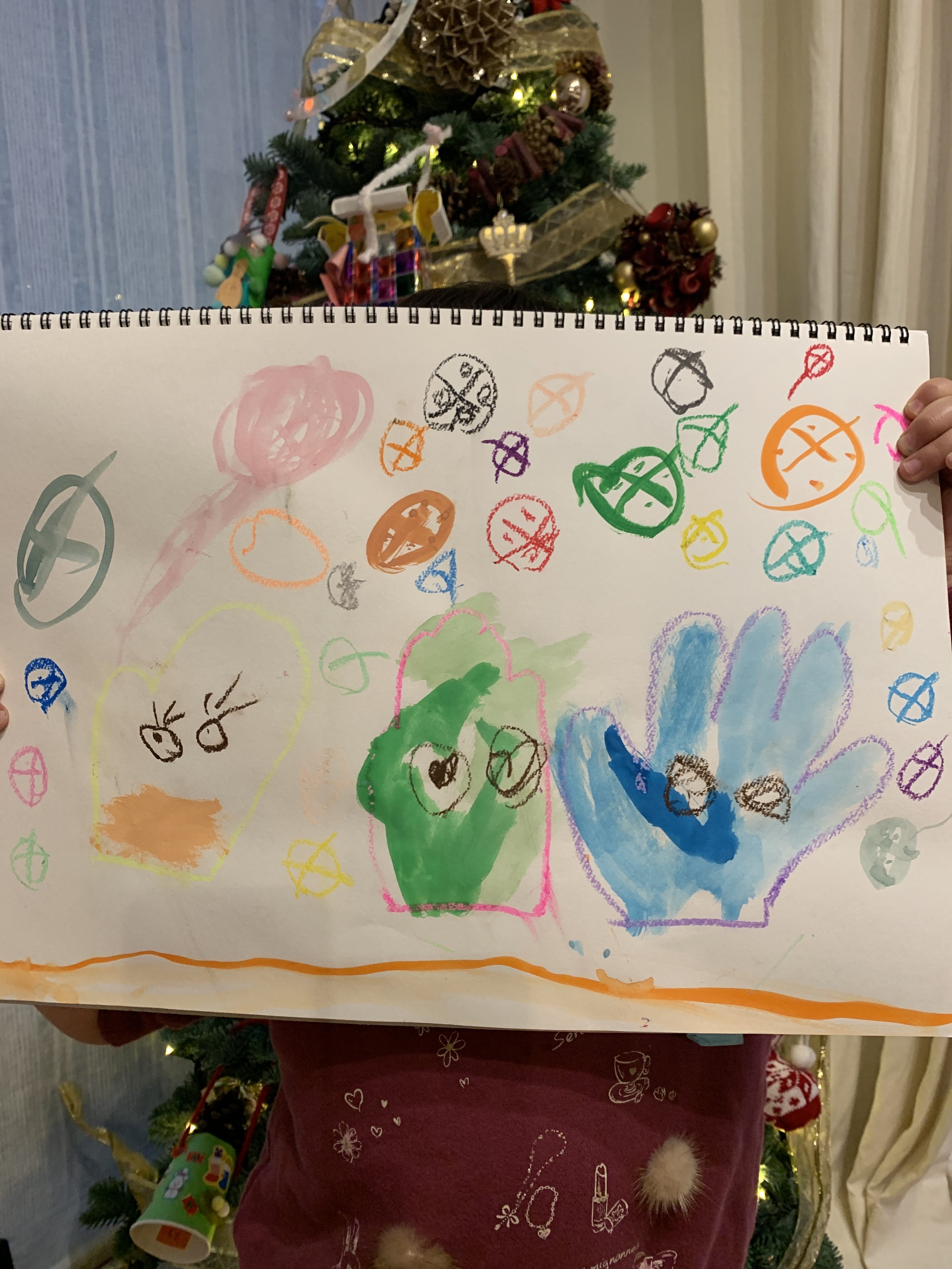 途中たくさんの色で描くのに疲れて、「お母さんも手伝って〜」と言う一幕もありましたが、無事に自分が納得するまでやりきっていました☺️