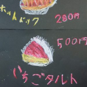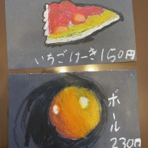 バナーナ ちょっと熟したイチゴ 愛 たのしいチョークアート きっさてん チョークアートでかいたえ 赤い金魚 イチゴタルト 超高級シャインマスカット・ほうせきやさん 喫茶店のメニュー パプリカ 王さまのおうかん ボール りんご 喫茶店のチョークアート りんご、コップ、かがみ じょうようしゃ レモん? きれいな海 ~チョークアート~