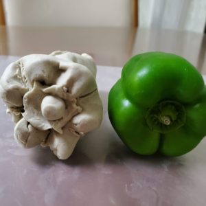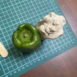 ☆1週目 ピーマンをよくみて粘土で作ってみよう! ☆2週目 自分の手をよく見て描いてみよう! そっくりにならなくても大丈夫、今回は『よく見る』が目的です。