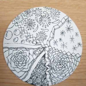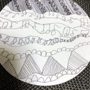 こまかいペンやボールペンなどを使ってくりかえし描いていきます。