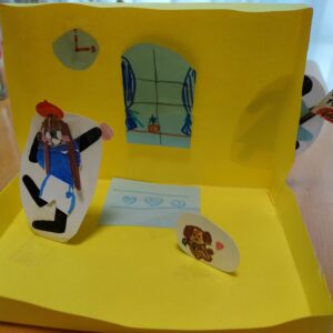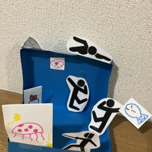 スポーツをしているピクトグラム、人の動きを使って立体コラージュを作ってみよう!新たな視点、動きのある作品を作ります。