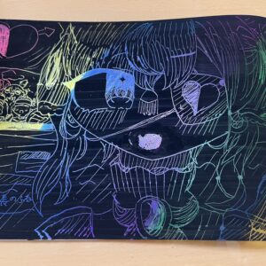 何色が出るかはお楽しみ!スクラッチは、引っ掻いていきながら制作していく作品です。