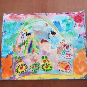 ☆はじいたり、にじませたりしてみよう! ☆クレヨンのはじき技や水で濡らした紙の上に色を置くことでできるにじみの技を体験します。