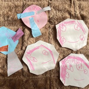 のりの力でなが~い長~いヘビや、おもしろい生き物を作ったよ!