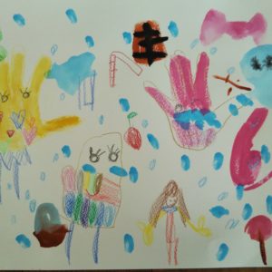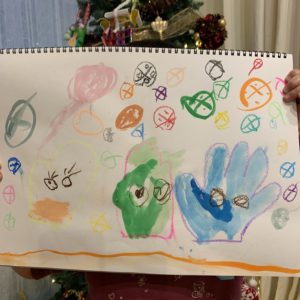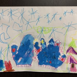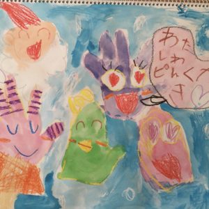 ボタン押しじゃんけん にじいろのてぶくろ てぶくろちゃんのクリスマスキャンプ 寒くなったお外でウキウキ笑顔のてぶくろちゃん ボタンの雪とパーティー お菓子屋さんにいて公園で遊んでいる手袋ちゃん てぶくろの雪パーティー