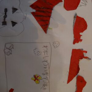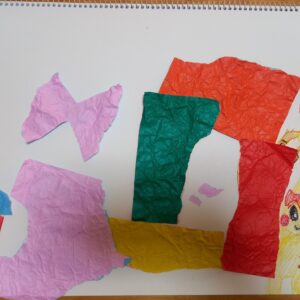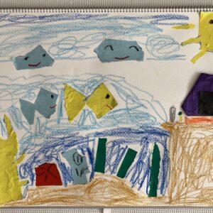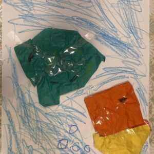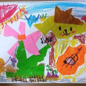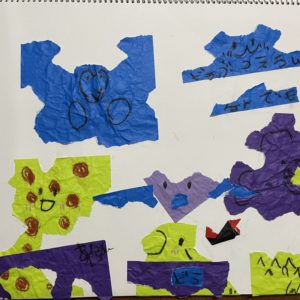 意味をもたない形から、自分で自由に発想をするお絵かきです。発想する力、ものごとを柔軟にとらえる力を育みます。