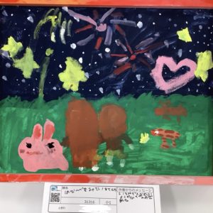 99ざほれすと 森に大きいねこちゃん ゆうべの日ので 夜と朝 あつい日 夕日の海 夜のクリスタル 夜におさんぽ UFO 夕やけとカラス キラキラな地球 夕やけの空 おおゆきの冬 海の生きもの 夜の海と空 へいわのまち きんぎょがにげた 一ぴきのおおかみ うみのめんだことさかなたち よるのいけ はなびをみているところ 夏休みにとっとりで見た夕やけ 宿か橋か 森の絵