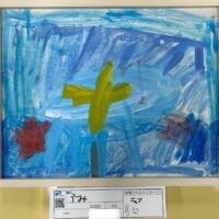 お月さま、上手な丸に切れてますね(^^) 絵の具を使ってお顔を描くのは難しいと思いますが、年中さんなのに凄いですね(^^…