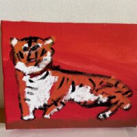 - 背景の赤も、トラの模様や顔も、とってもかっこよくてオシャレです!!!✨ はっきりした赤とオレンジに、上からのせた白がバッ… >>>