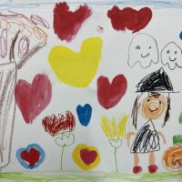 絵の具もペンもクレヨンも使って書いていて、とってもすてきです。かわいい!