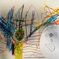 - ロケットがうちあげられるところをかいてくれたのかな?👀 ロケットだけでなくおきにいりのきつねのおりがみもはってくれてあり… >>>