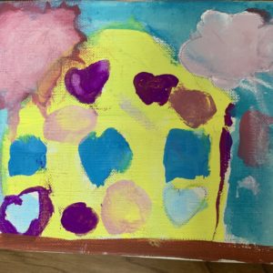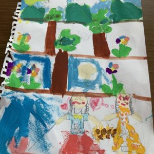 うさぎ(ねこ)をさんぽさせている女のこ。