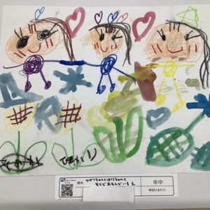 ひかりちゃんとゆなちゃんと そとであそんでいる え