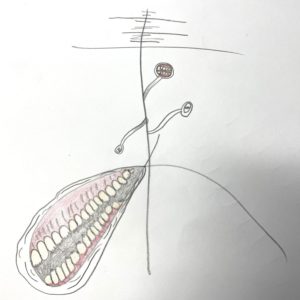 - トレバーヘンダーソン氏て言うホラーアーティストの書いた、バケものをモデルにした歯茎です。でも、この歯ぐきは僕が考えました… >>>