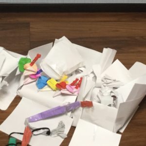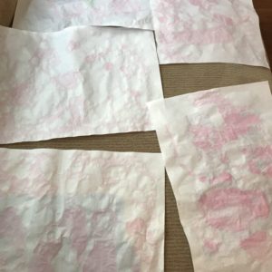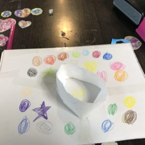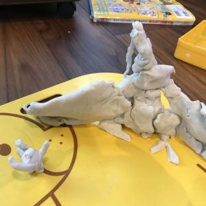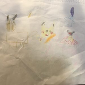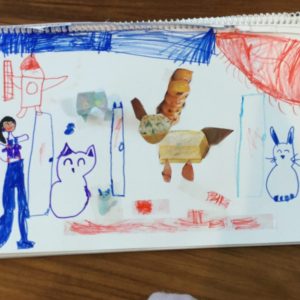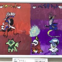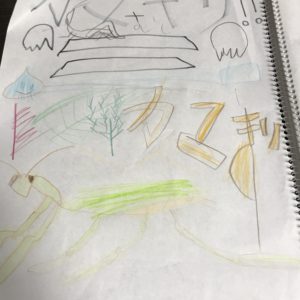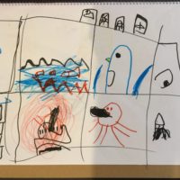 • いつもありがとうございます。 左下は、、台風。 イカの上は、ホタテだそうです。 何を描いたか覚えていないものもあるようで… >>>
