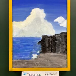 暑い夏の空と海、岩