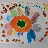 - asahiちゃん、ステキな作品! ひまわりがたくさんあって、元気をもらえる絵ですね♪ あ! かおのあるひまわり、みつけた… >>>