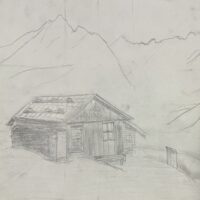 - 山小屋は定規で修正して、曲がらない様にしました。 これから山は影で書いていこうと思います。 >>>
