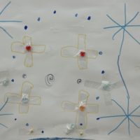 - お母さんともいっしょに制作できてよかったね😊 お魚、海藻、海の水の3色がきらりとしていてきれいだね✨ >>>
