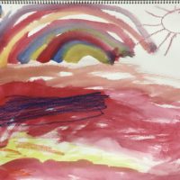 - 大きなおひさまとにじと赤や黄色で明るいきもちになれるすてきな作品だね☀️🌈 絵の具がだいすきでたのしみながら描いているの… >>>