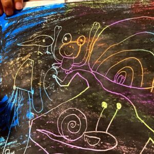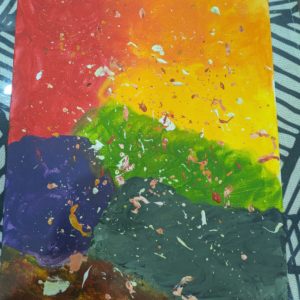 - クレヨンで塗りつぶしたので紙がクタクタになってしまいましたが、ラミネートをして立派なアート作品となりました! そして6月… >>>